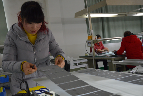 元旦过后,镇工业集中区内企业出现一派繁忙景象,淮安泽阳光伏科技有限公司、俊豪服饰等企业订单已排到4、5月份,为实现全镇工业经济新年“开门红”奏鸣了“喜洋洋”序曲。图为泽阳光伏科技有限公司流水线上工人忙碌的身影。